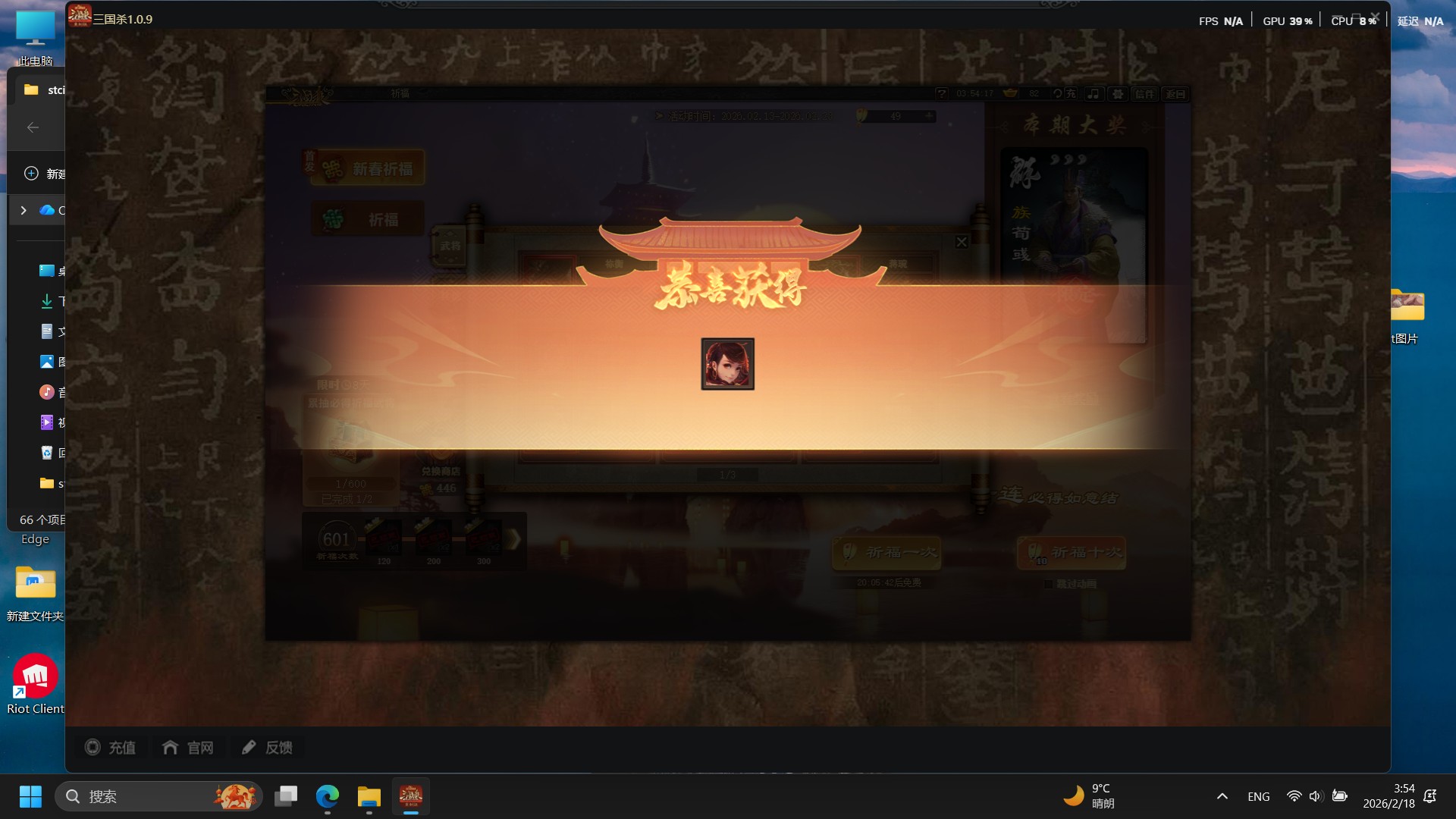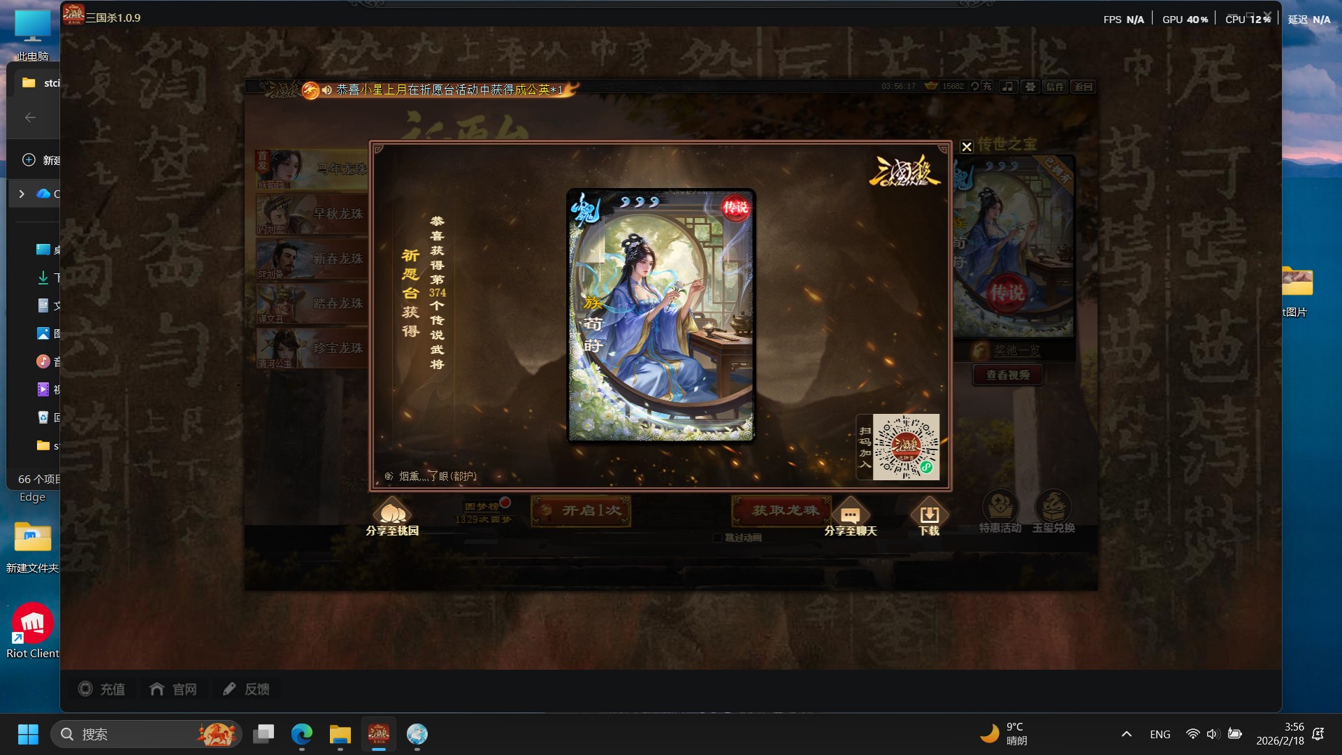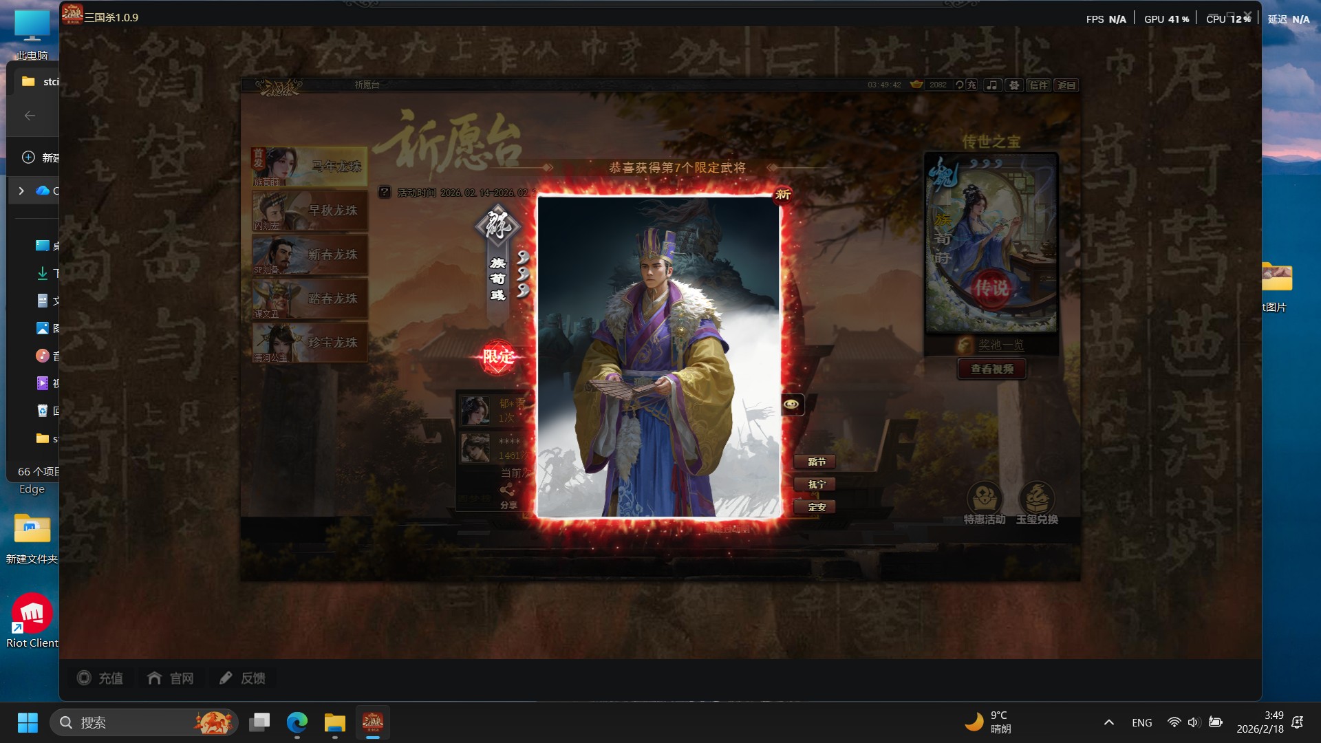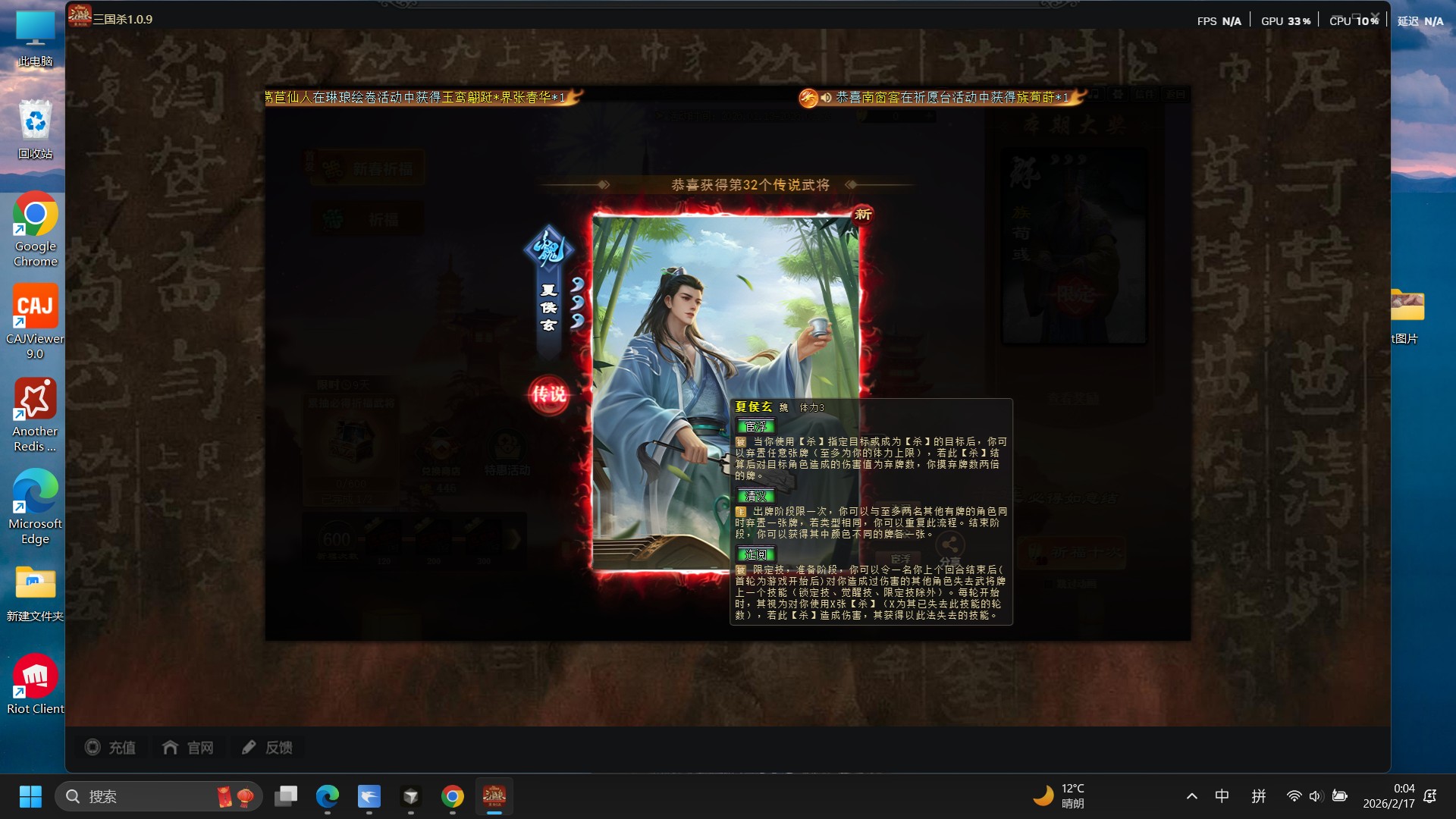 记录春节三国杀游戏抽卡